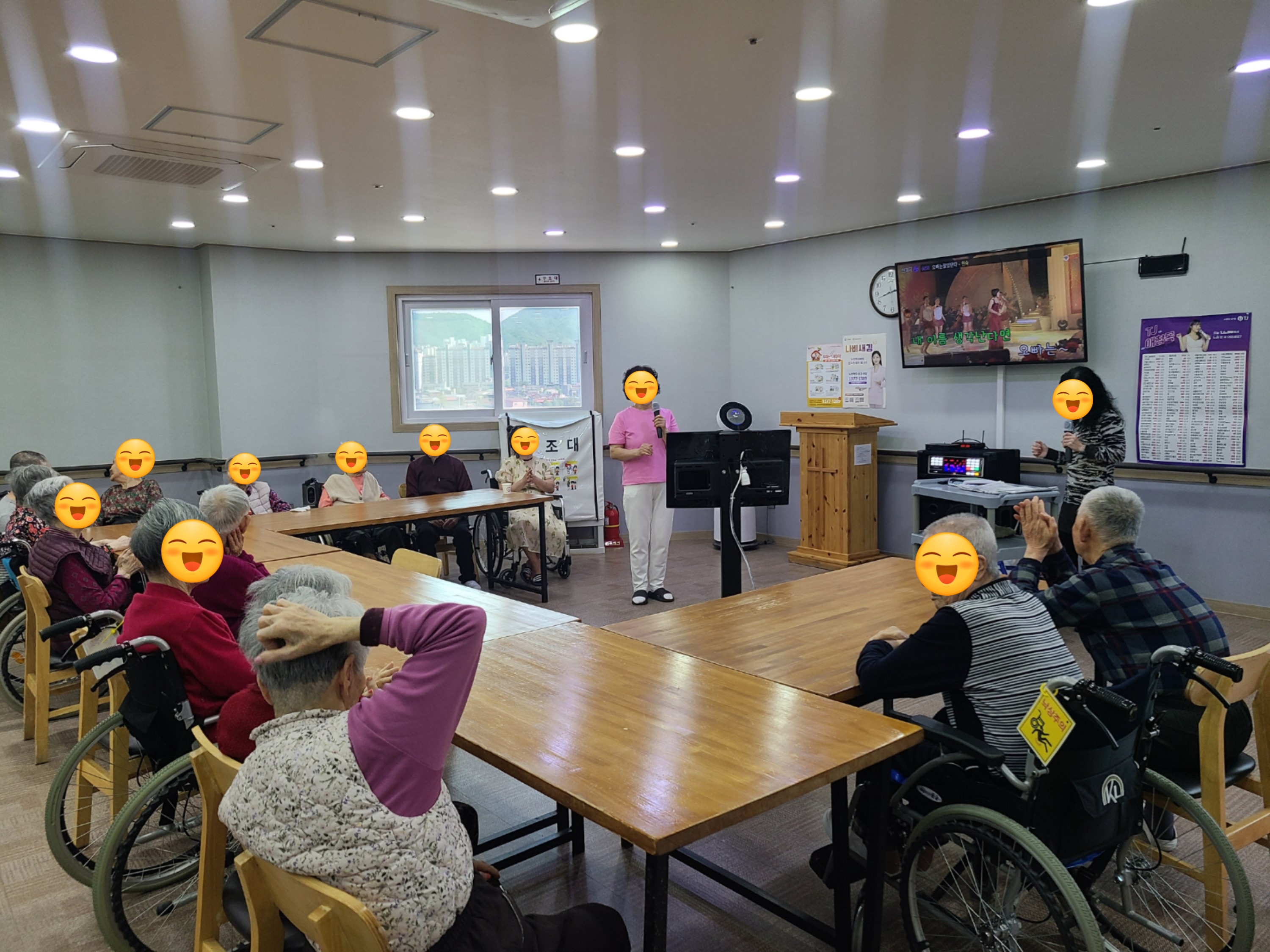 노래교실 관리자 2025-04-21 15:33 여가프로그램으로 우리 어르신들이 기다리시던 노래교실을 하였습니다~ 함께 노래도 부르시고 흥겹게 춤도 추시며 즐거운시간을 보내셨습니다~ ※입소 및 등급문의는 유선상 연락주시면 친절하게 안내도와드리겠습니다 ^^ 주소 : 충북 충주시 교동13길 13-29 연락처 : 043 - 910 - 2000 다음글 봄꽃 만다라 이전글 스푼타 목록