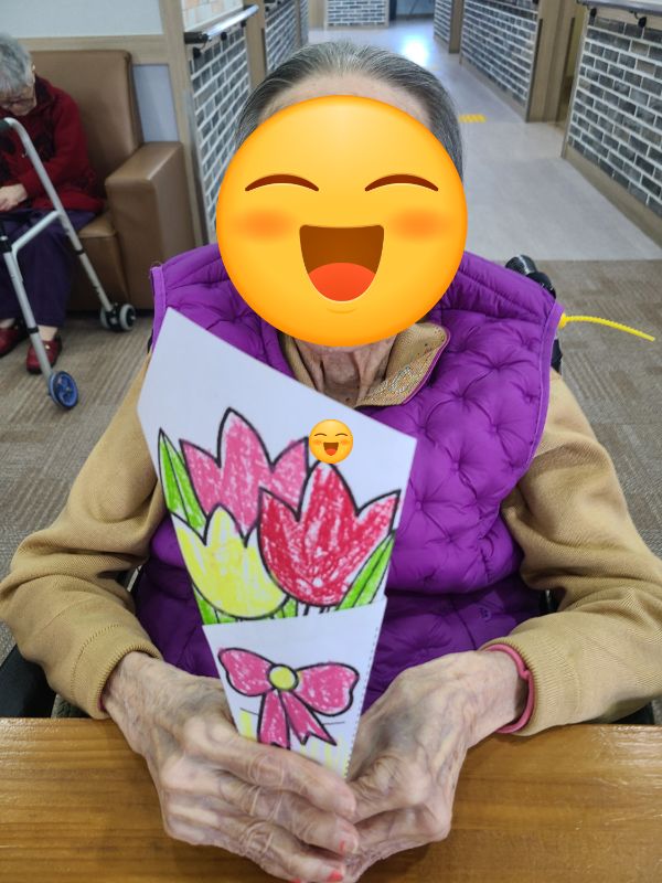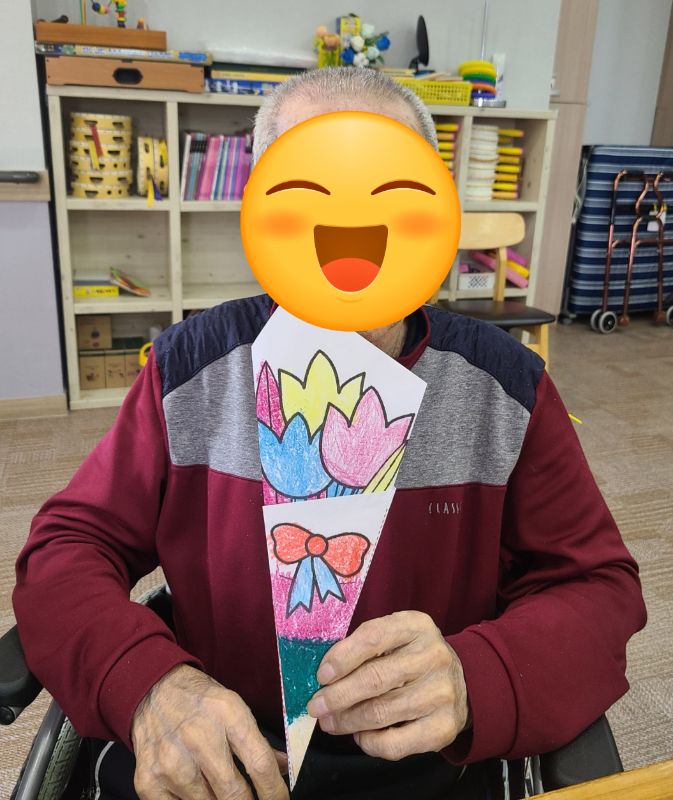 꽃다발 만들기 관리자 2025-05-20 15:24 인지기능 프로그램으로 꽃다발 만들기를 하였습니다~예쁘게 만든 꽃다발을 들고 사진도 예쁘게 찍어드렸습니다~ ※입소 및 등급문의는 유선상 연락주시면 친절하게 안내도와드리겠습니다 ^^ 주소 : 충북 충주시 교동13길 13-29 연락처 : 043 - 910 - 2000 다음글 접시 소고 이전글 5월 생신잔치 목록