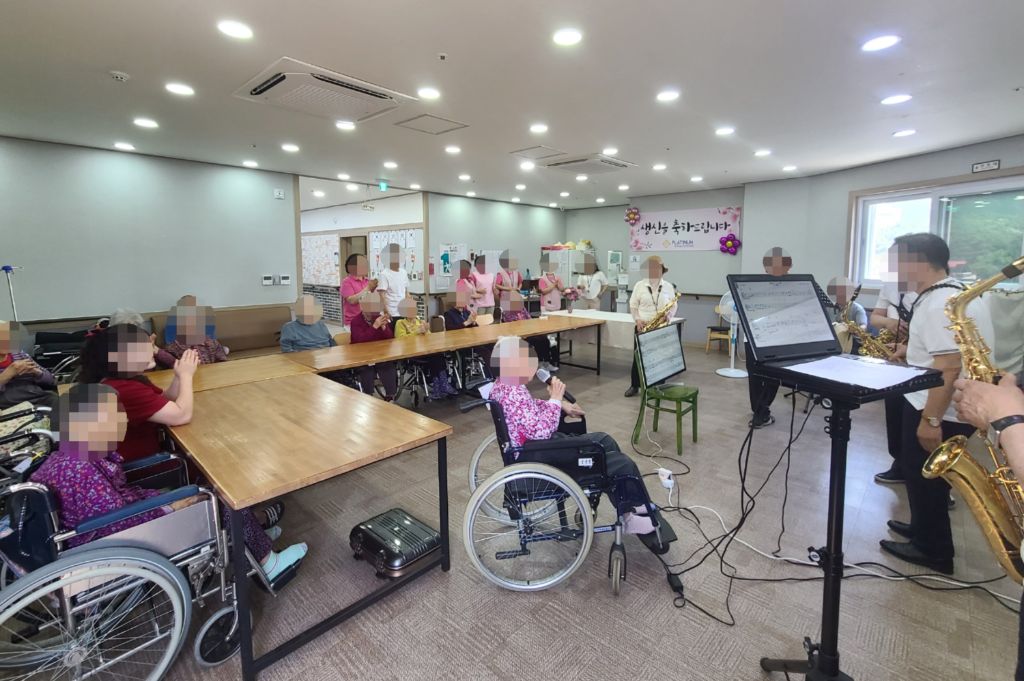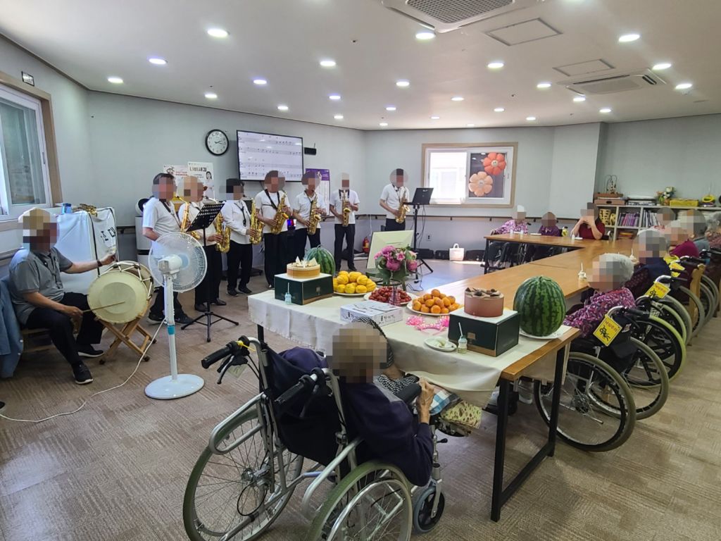 6월 생신잔치 관리자 2025-06-04 17:22 6월 생신잔치를 하였습니다~어르신들과 직원들과 보호자님이 함께 축하 노래를 불러 드리고 안림 색소폰 교실 봉사자분들이 오셔서 색소폰 연주도 해주셨습니다~ 어르신들이 노래를 부르시고 색소폰 연주도 멋지게해주셔서 즐거운 생신잔치였습니다~어르신 생신 축하드립니다~ 항상 건강하세요~ ※입소 및 등급문의는 유선상 연락주시면 친절하게 안내도와드리겠습니다 ^^ 주소 : 충북 충주시 교동13길 13-29 연락처 : 043 - 910 - 2000 다음글 제기 손놀이 이전글 접시 소고 목록