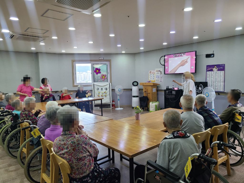 롤리팝 연주 관리자 2025-06-13 16:44 인지기능 프로그램을 진행하였습니다프로그램전 노래에 맞추어 레크댄스를 하였습니다인지훈련으로 같은손 만들기를 하였습니다화면을 보고 같은손 모양을 따라해 보았습니다 인지훈련으로 옛날 물건맞추기를 하였습니다옛기억을 떠올리며 이야기도 나누시고 옛날 물건도 잘 맞추셨습니다 롤리팝 드럼 연주를 하였습니다처음보는 악기를 신기해 하기도 하시고 소고와 같은 소리가 나는 악기에 금새 친숙해지셔서신나는 노래에 맞추어 장단을 맞추며 재미있어 하셨습니다 *입소 및 등급문의는 유선상 연락주시면 친절하게 안내 도와드리겠습니다~^^ 주소:충북 충주시 교동 13길 13-29 전화:043)910-2000 다음글 노래교실 이전글 노래교실 목록