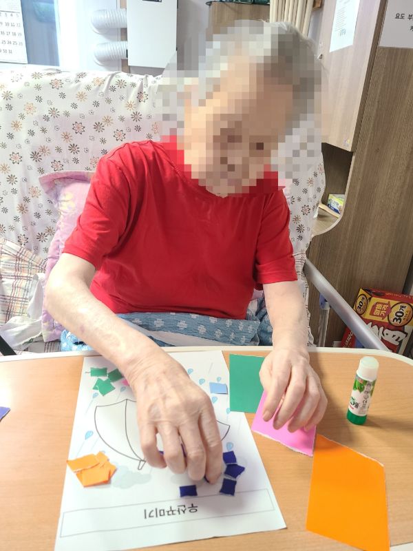 우산꾸미기 관리자 2025-07-15 15:13 인지기능 프로그램으로 우산꾸미기를 하였습니다색종이조각을 붙여 알록달록 예쁜 우산을 완성하였습니다*입소 및 등급문의는 유선상 연락주시면 친절하게 안내 도와드리겠습니다~^^ 주소:충북 충주시 교동 13길 13-29 전화:043)910-2000 다음글 별스틱 이전글 노래교실 목록
