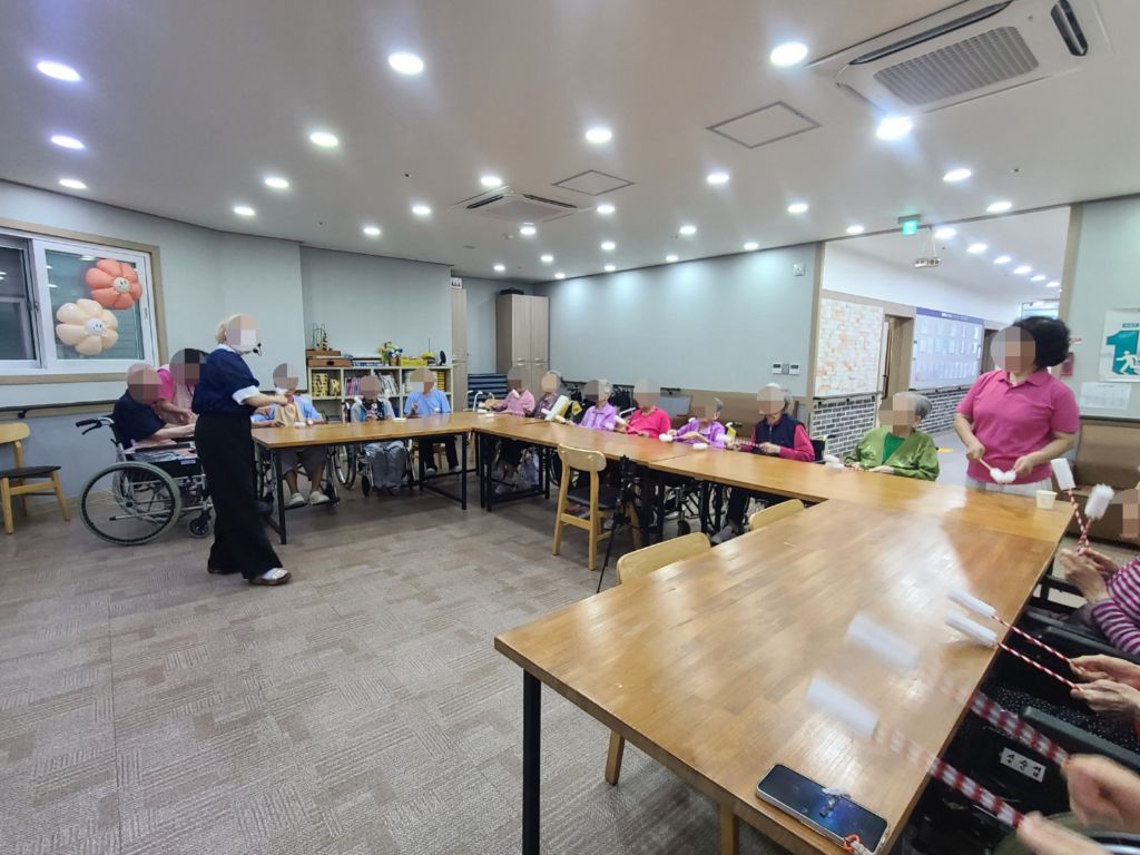 별스틱 관리자 2025-07-17 15:26 인지기능 프로그램으로 그림보고 여름 과일 이름맞추기와다른 그림찾기를 하였습니다별스틱으로 신나게 노래장단도 맞추셨습니다손바닥박수, 주먹박수, 손끝박수, 손목박수등 건강박수도 배우셨습니다마지막으로 스트레칭으로 몸을 풀어 주고 프로그램을 마무리하였습니다 *입소 및 등급문의는 유선상 연락주시면 친절하게 안내 도와드리겠습니다~^^ 주소:충북 충주시 교동 13길 13-29 전화:043)910-2000 다음글 노래교실 이전글 우산꾸미기 목록