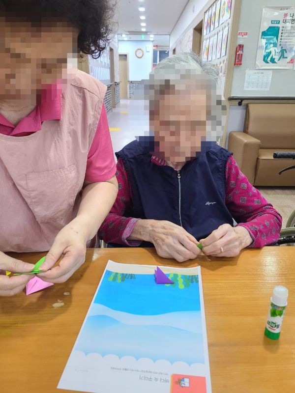 물고기접기 관리자 2025-07-29 16:35 우리 어르신들 무더운 날씨에 시원한 바다를 생각하며물고기 접기를 하였습니다순서에 따라 물고기를 예쁘게 잘 접으셨습니다 *입소 및 등급문의는 유선상 연락주시면 친절하게 안내 도와드리겠습니다~^^ 주소:충북 충주시 교동 13길 13-29 전화:043)910-2000 다음글 색소폰 연주 이전글 노래교실 목록