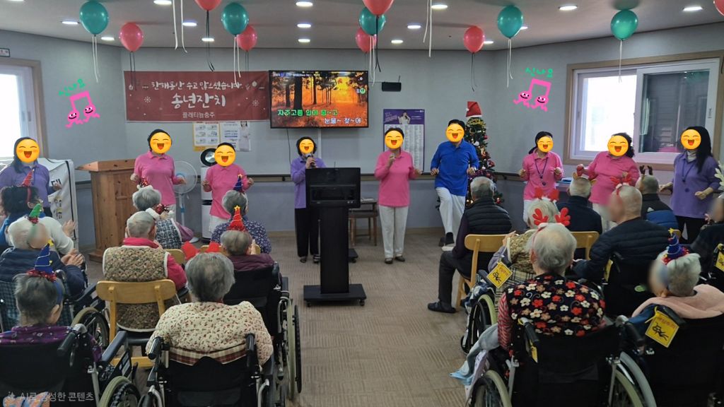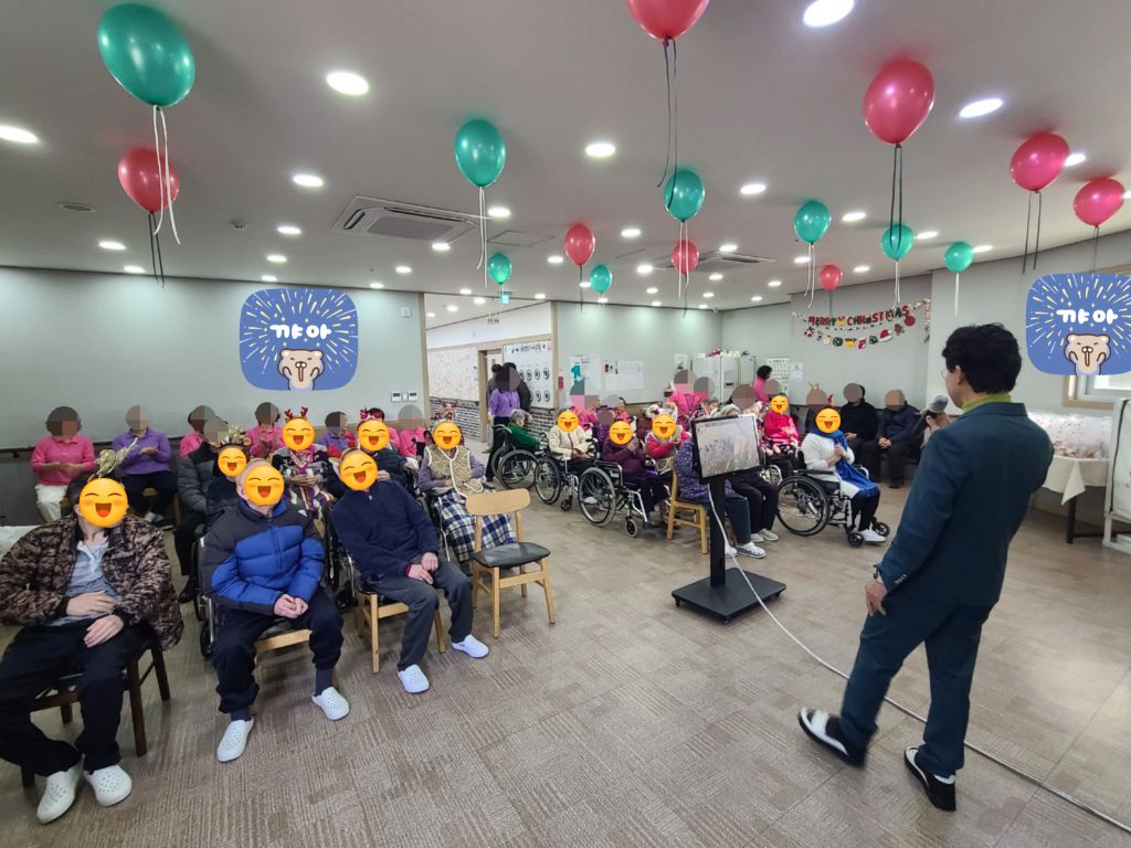 2025년 송년잔치 관리자 2025-12-19 11:20 2025년 송잔잔치를 하였습니다~어르신들과 보호자님들 직원들이 한자리에 모여노래하며 춤추며 즐거운 시간을 보내셨습니다~♬우리 어르신들과 함께 한 2025년 행복했습니다~♡어르신들 새해 건강하시고 복 많이 받으세요~직원들 모두 한해 동안 수고 많으셨습니다~ ○입소문의는 유선상 연락주시면 친절하게 안내 도와드리겠습니다^^ ○주소: 충북 충주시 교동 13길 13-29 ○연락처: 043)910-2000 다음글 크리스마스 트리 꾸미기 이전글 크리스마스 리스만들기 목록