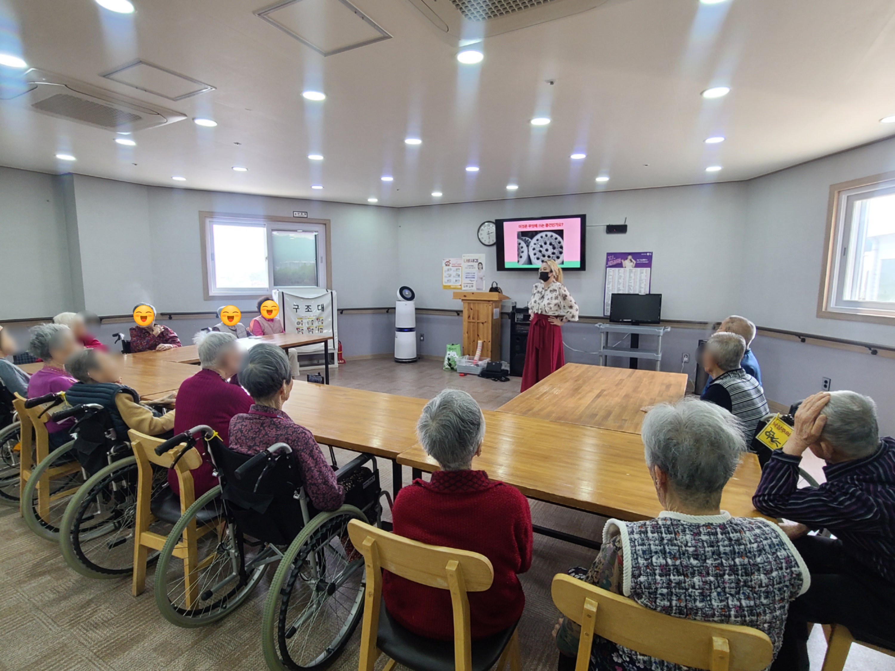 탬버린 연주 관리자 2025-04-24 16:35 인지기능 프로그램으로 웃고삽시다 노래에 맞추어 율동을 따라하셨습니다 인지훈련으로 그림을 보고 꽃이름 맞추기와 그림보고 옛날물건 이름맞추기를 하시며 옛기억을 떠올리셨습니다 미니탬버린으로 신나는 노래에 맞추어 장단을 치시고 일어나 춤도 추시며 프로그램에 즐겁게 참여하셨습니다 ※입소 및 등급문의는 유선상 연락주시면 친절하게 안내도와드리겠습니다 ^^ 주소 : 충북 충주시 교동13길 13-29 연락처 : 043 - 910 - 2000 다음글 2025년 어버이날 행사 이전글 봄꽃 만다라 목록