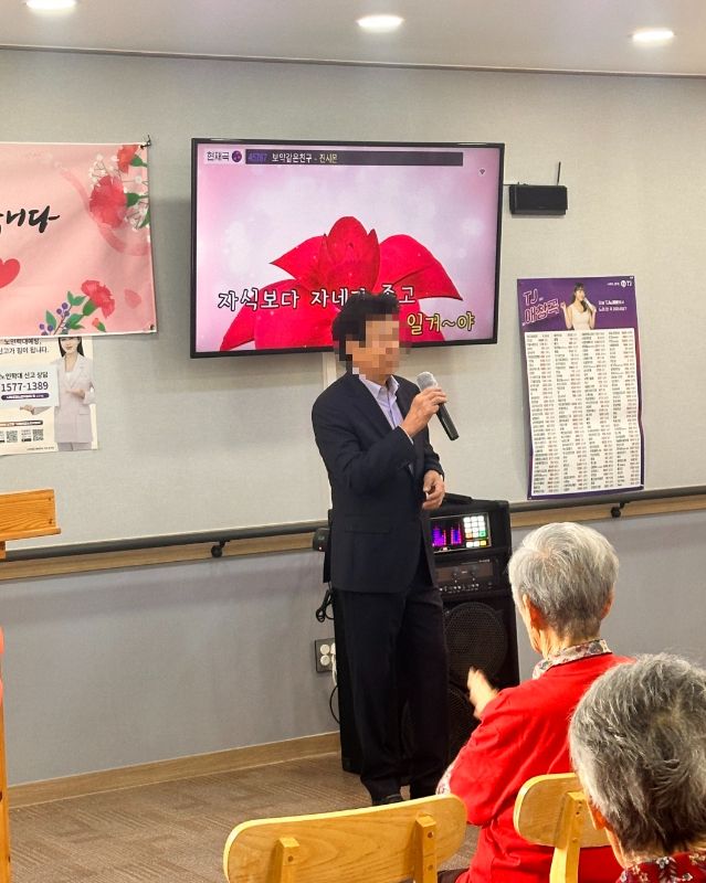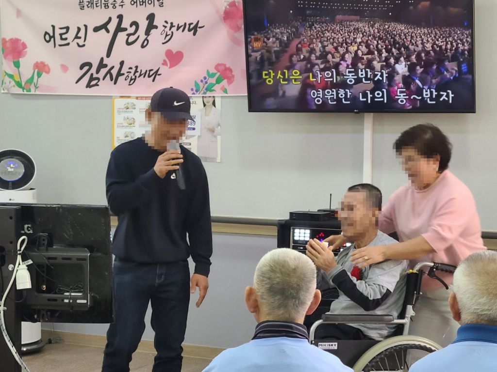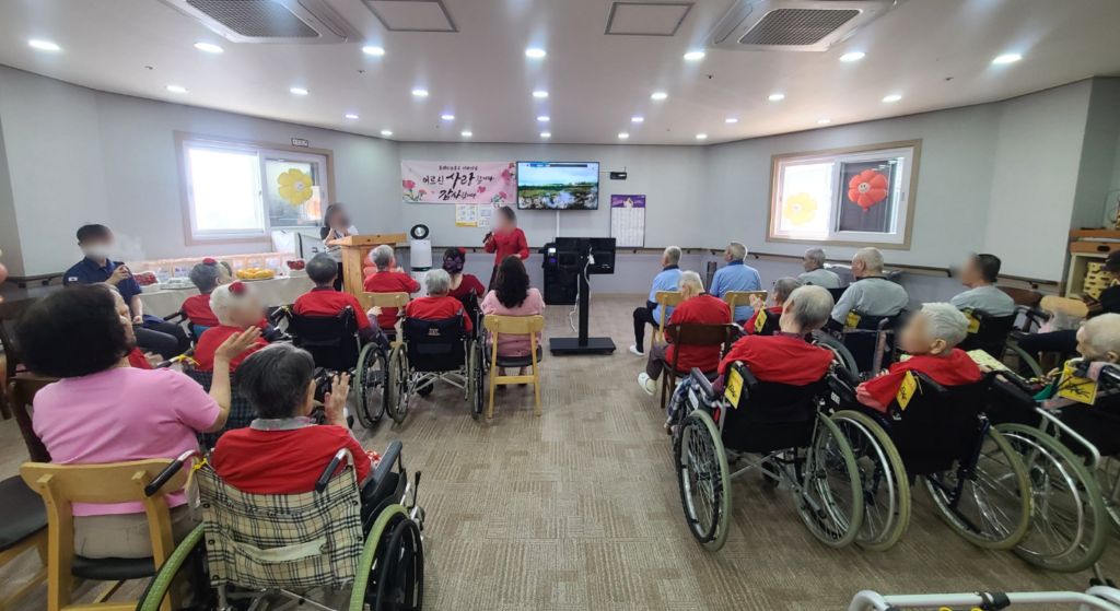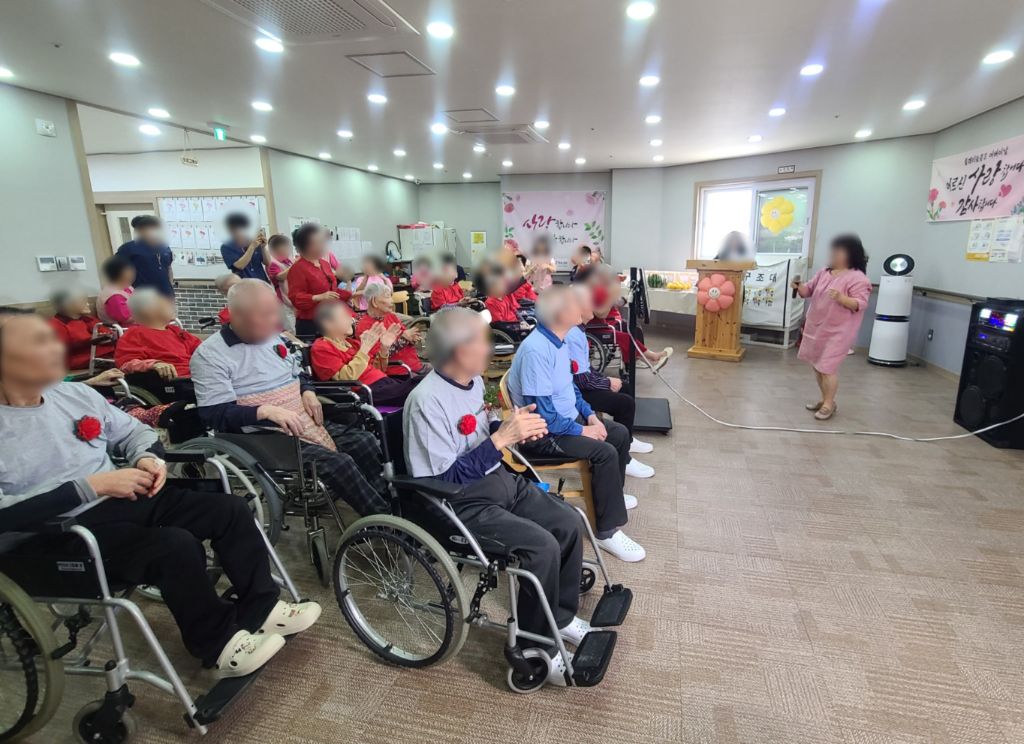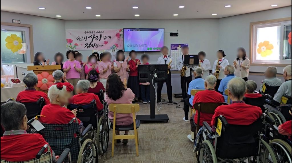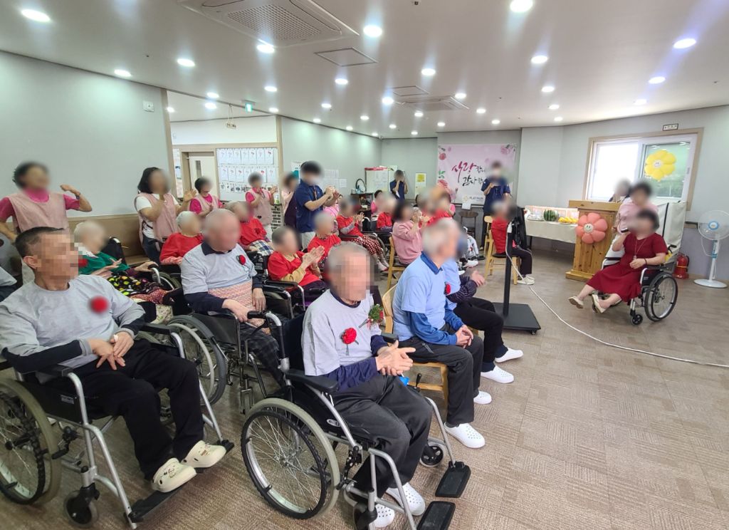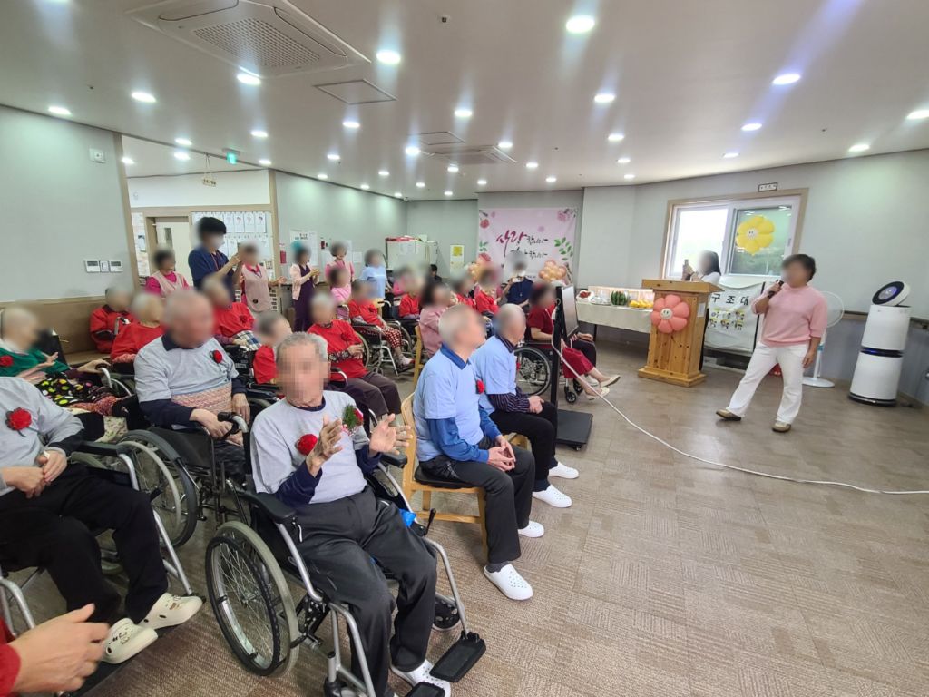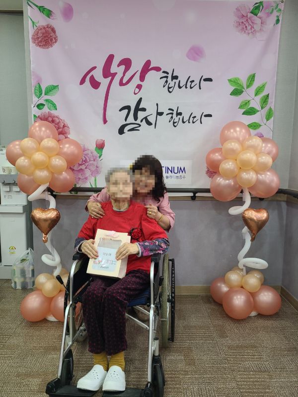 2025년 어버이날 행사 관리자 2025-05-10 14:11 2025년 어버이날행사로 보호자님들과 전직원이 함께 어르신들께 감사의 마음을 전하였습니다~시설장님의 인사말로 시작하여 대표님의 가수 못지 않은 노래실력으로 어버이날을 축하드렸습니다~보호자님들과 직원들이 어르신들께 카네이션을 달아 드리고전직원이 함께 어머님 은혜 노래도 불러 드렸습니다~충주 힐링 색소폰 동호회 회원분들이 멋진 연주도 해주셨고직원의 축하 노래와보호자님의 축하 노래 입소자의 노래로보호자님들과 어르신들과 전직원이 함께하는 어버이날 행사로 즐거운 시간을 보내셨습니다~행사가 끝나고가족과 함께 기념촬영으로 좋은 추억도 남기셨습니다~ 바쁘신 가운데 어버이날 행사에 참석해 주신 보호자님들께 감사드립니다~플래티늄 요양원 어르신들 모두 항상 건강하시고 사랑합니다~ 감사합니다~ ※입소 및 등급문의는 유선상 연락주시면 친절하게 안내도와드리겠습니다 ^^ 주소 : 충북 충주시 교동13길 13-29 연락처 : 043 - 910 - 2000 다음글 노래교실 이전글 탬버린 연주 목록