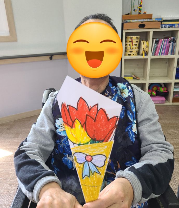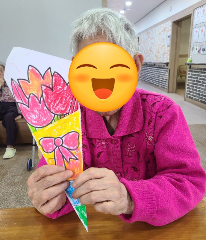 꽃다발 만들기 관리자 2025-05-20 15:24 인지기능 프로그램으로 꽃다발 만들기를 하였습니다~예쁘게 만든 꽃다발을 들고 사진도 예쁘게 찍어드렸습니다~ ※입소 및 등급문의는 유선상 연락주시면 친절하게 안내도와드리겠습니다 ^^ 주소 : 충북 충주시 교동13길 13-29 연락처 : 043 - 910 - 2000 다음글 접시 소고 이전글 5월 생신잔치 목록
