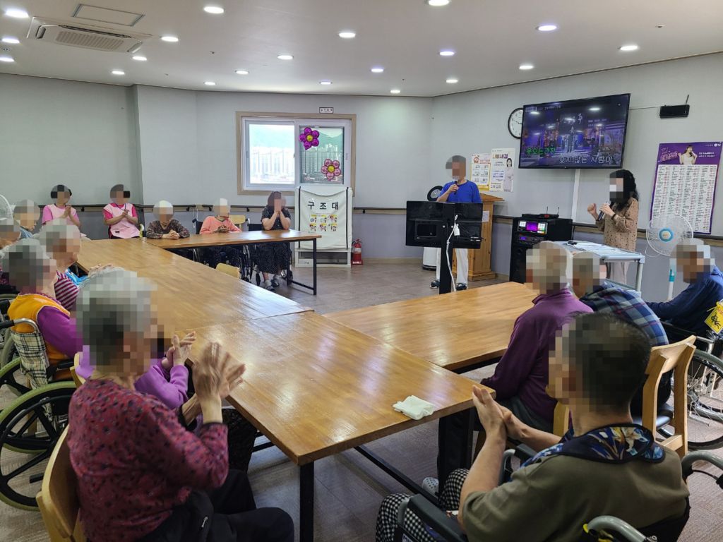 노래교실 관리자 2025-06-09 15:55 여가 프로그램으로 노래교실을 진행하였습니다~ 어르신들께서 좋아하시는 노래를 함께 부르시고 한분씩 돌아가며 애창곡도 부르시고 직원들도 어르신들께 노래를 불러드리며 노래교실에 참여하셔서 즐거운 시간을 보내셨습니다~ *입소 및 등급문의는 유선상 연락주시면 친절하게 안내 도와드리겠습니다~^^ 주소:충북 충주시 교동 13길 13-29 전화:043)910-2000 다음글 롤리팝 연주 이전글 제기 손놀이 목록