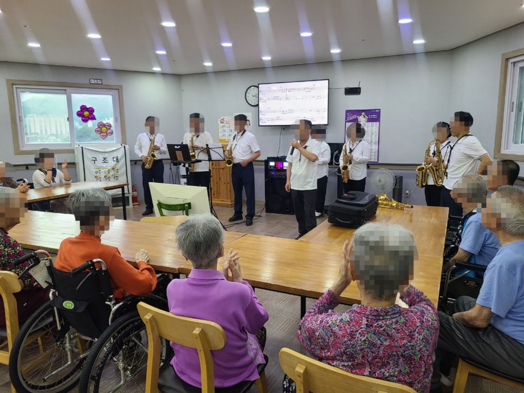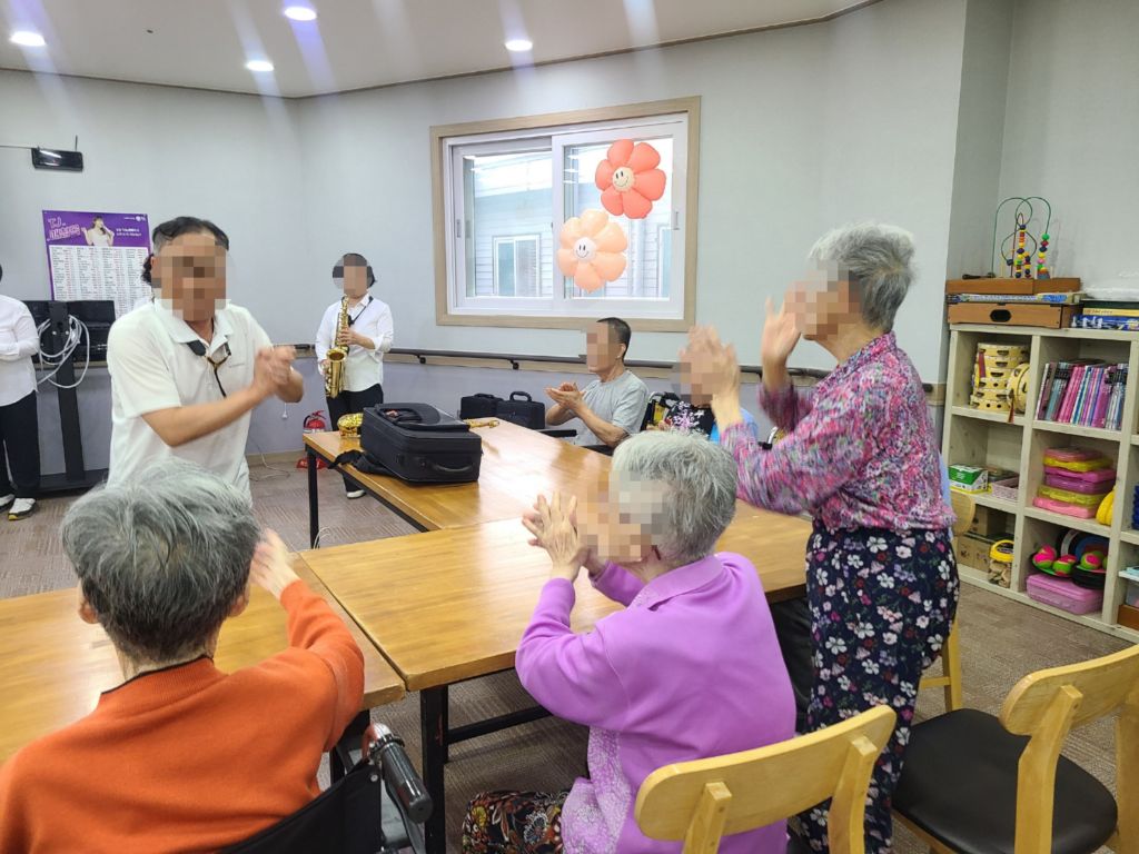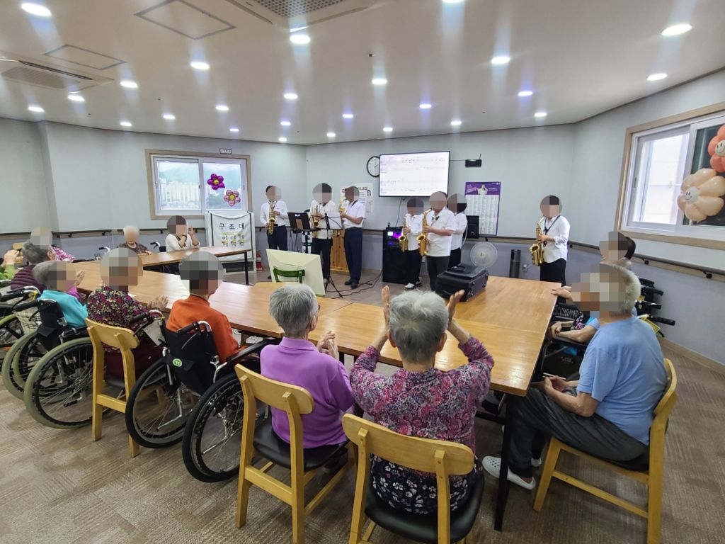 색소폰 연주 관리자 2025-06-25 16:36 충주 힐링 색소폰 동호회에서오셔서 색소폰 연주봉사를 해주셨습니다어르신들이 좋아하시는 노래를 연주해주시고 노래도 불러주시고 춤도추시며멋진 색소폰 연주와 노래로 어르신들을 즐겁게 해드렸습니다감사합니다~ *입소 및 등급문의는 유선상 연락주시면 친절하게 안내 도와드리겠습니다~^^ 주소:충북 충주시 교동 13길 13-29 전화:043)910-2000 다음글 컵타 이전글 수국꽃 색칠하기 목록