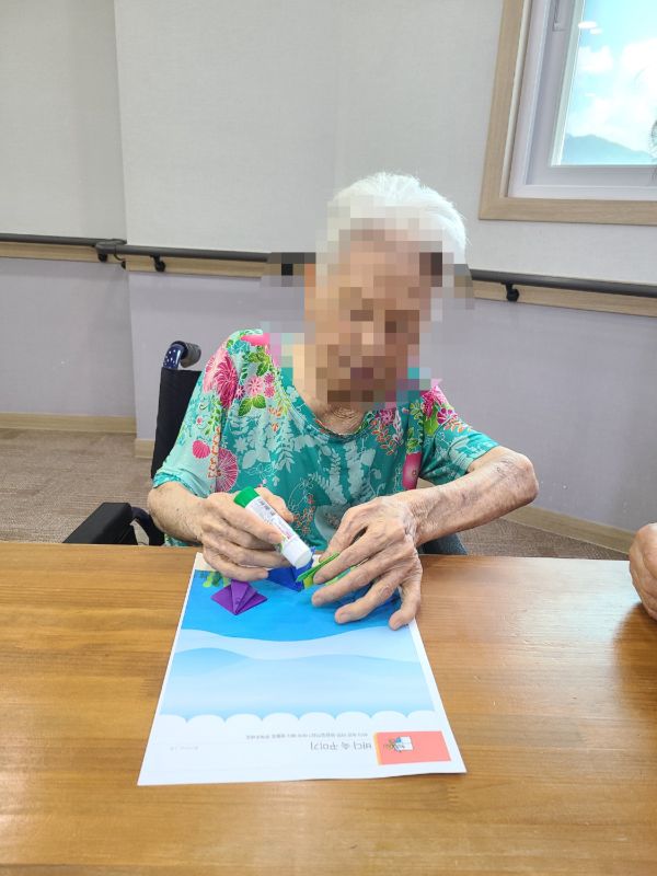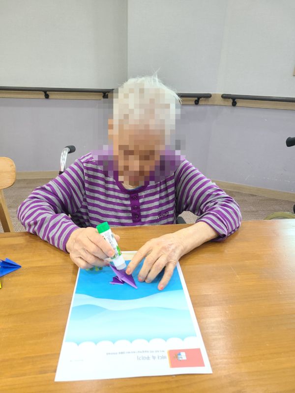 물고기접기 관리자 2025-07-29 16:35 우리 어르신들 무더운 날씨에 시원한 바다를 생각하며물고기 접기를 하였습니다순서에 따라 물고기를 예쁘게 잘 접으셨습니다 *입소 및 등급문의는 유선상 연락주시면 친절하게 안내 도와드리겠습니다~^^ 주소:충북 충주시 교동 13길 13-29 전화:043)910-2000 다음글 색소폰 연주 이전글 노래교실 목록