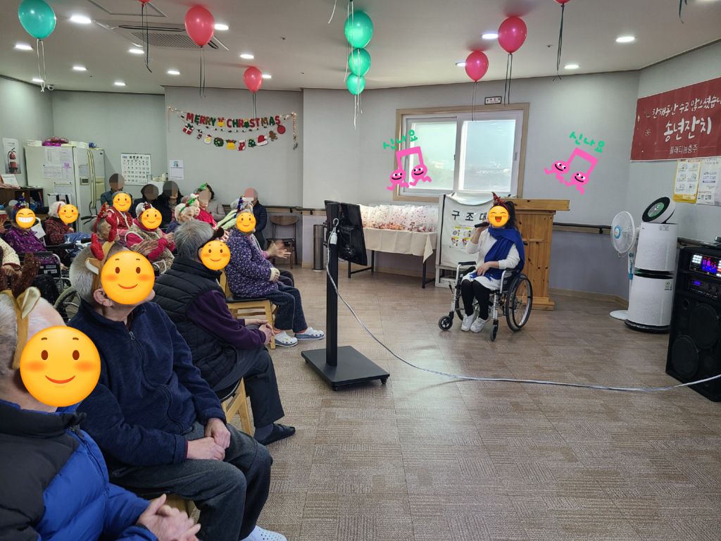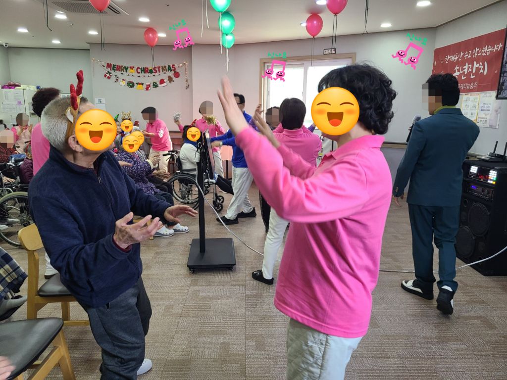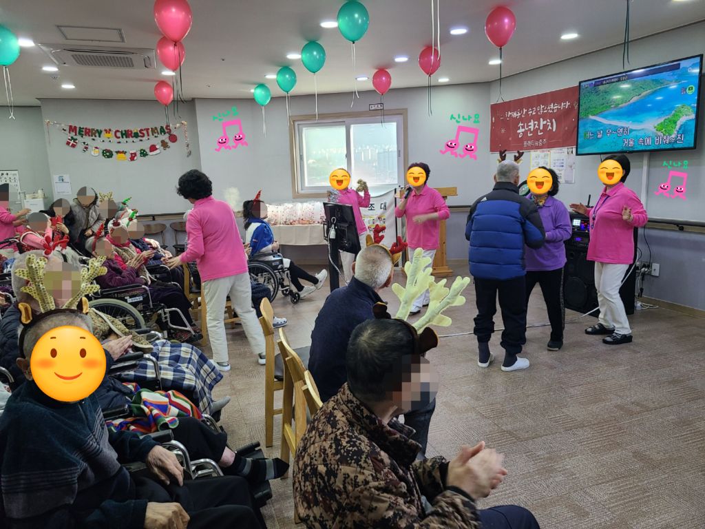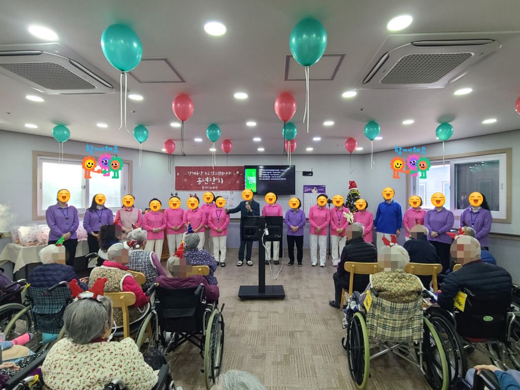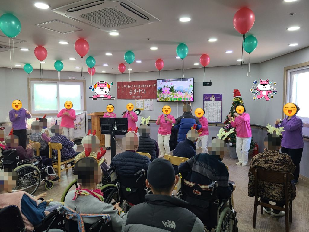 2025년 송년잔치 관리자 2025-12-19 11:20 2025년 송잔잔치를 하였습니다~어르신들과 보호자님들 직원들이 한자리에 모여노래하며 춤추며 즐거운 시간을 보내셨습니다~♬우리 어르신들과 함께 한 2025년 행복했습니다~♡어르신들 새해 건강하시고 복 많이 받으세요~직원들 모두 한해 동안 수고 많으셨습니다~ ○입소문의는 유선상 연락주시면 친절하게 안내 도와드리겠습니다^^ ○주소: 충북 충주시 교동 13길 13-29 ○연락처: 043)910-2000 다음글 크리스마스 트리 꾸미기 이전글 크리스마스 리스만들기 목록