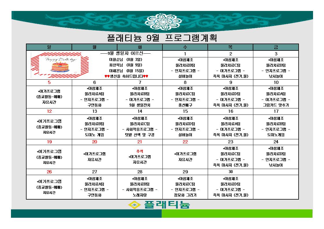 2021년 9월 프로그램 관리자 2021-08-31 09:06 ※입소 및 등급문의는 유선상 연락주시면 친절하게 안내도와드리겠습니다 ^^주소 : 충북 충주시 교동13길 13-29연락처 : 043 - 910 - 2000 다음글 2021년 3분기 운영위원회 안내 이전글 2021년 8월 프로그램 목록